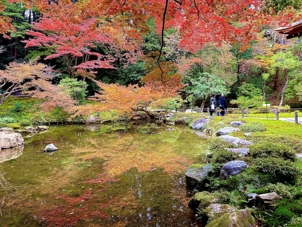燃えるような紅葉と、静まり返る苔の緑。その強い対比に心を奪われました。